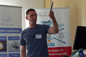 Im Anschluss präsentierte Frau Jobke (STFI) neue Ansätze zur Anwendung textilbasierter Verstärkungsstrukturen in Kunststoffverbunden vor. Herr Ganzer von der Kajamed GmbH ging in seinem Fachvortrag auf praxisnahe technologische Herausforderungen aus der Orthopädietechnik ein. Herr Dr. Behnisch vom Institut für Leichtbau und Kunststofftechnik (ILK) der TU Dresden erläuterte innovative Ansätze zur Integration von Streckfasern in kunststoffbasierte Leichtbaustrukturen.