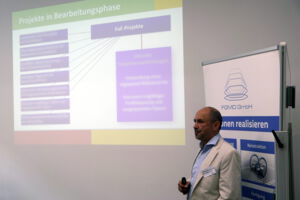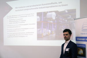 Im Anschluss präsentierten Herr Maier und Herr Jörg die Kompetenzen und das Know-how der Creative Verpackungen Schönherr GmbH. Danach stellte Herr Luft (Institut für Leichtbau und Kunststofftechnik) den Entwicklungsstand des aktuell laufenden Forschungsprojekts „Entwicklung einer innovativen Stehhilfe für Kleinkinder“ vor. Außerdem erläuterte Herr Dr. Krahl von der ANYBRID GmbH die neue Technologie des mobilen Spritzgießens, die flexibel vor Ort eingesetzt werden kann und völlig neue Anwendungsgebiete eröffnet.