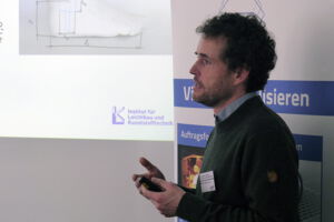 Nach der Begrüßung durch Herrn Dr. Behnisch (Institut für Leichtbau und Kunststofftechnik) informierte Herr Göbler vom Netzwerkmanagement über den aktuellen Arbeitsstand des Netzwerks. Die bisher initierten und in Planung befindlichen Forschungsprojekte verdeutlichen die Innovationskraft der beteiligten Netzwerkpartner.